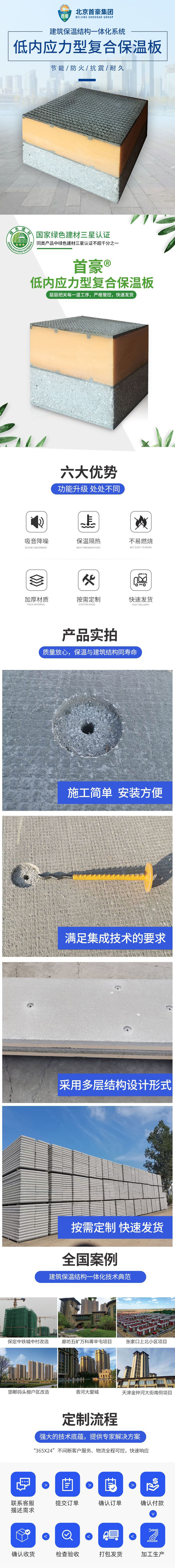 低內應力型復合保溫板系統是北京首豪集團自主知識產權專利復合剪力墻結構體系,是歷經多年市場驗證的技術可靠的建筑體系,是從系統構造、性能要求、設計構造到施工驗收一整套完整的技術體系。實現了墻體與結構保溫一體化。2017年被建設部科技成果鑒定為“國內領先水平”。低內應力型復合保溫板系統使用無氟無溴低內應力型擠塑板、石墨擠塑板,石墨聚苯板為主要保溫芯材,外輔輕…
